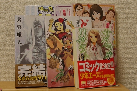 酒は辛口肴は下ネタ 4巻、吉田家のちすじ 4・5巻、天上天下22巻、どみなのド! 4巻、サクラダリセット 3巻 購入。20101121 posted by (C)vvRikaKls酒は辛口肴は下ネタ 4巻酒は辛口肴は下ネタ(4)価格:560円(税込、送料別)吉田家のちすじ 4・5巻吉田家のちすじ(4)価格:570円(税込、送料別)吉田家のちすじ(5)価格:570円(税込、送料別)天上天下 22巻どみなのド! 4巻サクラダリセット 3巻