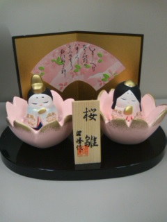 桃の中にいるのが、バイト先に飾ってあるお雛様。