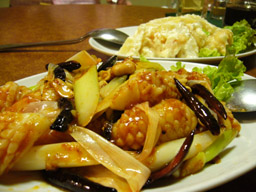 ねれっろ・ますかれ~ぜ研究所なので、1週間に1本はETNA ROSSOを飲みます。Terre NereのETNA ROSSO 2004のようなエレガンスはないけれど、酸とミネラルがぎゅっとつまっていて、中華にはいいと思います。男子二人は陳年紹興酒も1本あけてます。あわせたもの蒸し豚のニンニクたれかけもう一度豆苗炒め!五目焼きそばチャーハン杏仁豆腐←ママからのサービス♪4人で思いっきり食べて2万6000円弱。彩鳳のお料理は、化学調味料を使っていないので、頭も痛くならないし、味付けも絶妙でおいしいんですよ!で、大食い4人組は2次会へ夜の市場通り