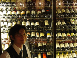 高橋クンの新しいお店。彼女のEちゃんから、電話をもらって、遅い時間にちょっぴり顔を出してきました。風邪ひいていたけれど、しっかりGIULIO FERRARIを1杯だけいただきました。香ばしいトースト香、甘くて華やかな果実香、肌理の細かい滑らかな泡 おいしいわ~♪今流行のカウンターダイニング。900kgの大きな一枚板のカウンターです。(近いうちご飯食べにいってちゃんと写真を撮ってきます。)セラーの前でうれしそうなソムリエのゆうちゃん。高橋親分とスタッフこれからちょくちょく寄らしてもらいます♪ワインとお料理をゆっくり味わいたいから、できれば 禁煙 が いいなぁ~(今日もReceptionに見えていた方々、タバコばんばん吸っていたので、ちょっと苦しかったわ。)