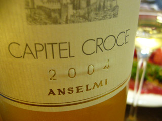 i vini bianchi 編Trentino=Alto・Adige ちょっとアルザスと似ているらしい。畑の標高は300-400mくらいです。☆Trento Brut Perle 2001@Ferrariぶらんどぶらん Ch 100%です。48M 熟成。Perleという畑名にふさわしく、真珠色が美しい。フランスパンの香り、レモン、後からアプリコットのシロップ漬け見た目も涼しげな冬瓜のポタージュスープとあわせる。上にたらしたオリーブオイルの香りとブロードのこくと冬瓜のみずみずしさがワインとあう。←これ まねしよ~。バーミックスがあるから手軽にできそう。☆Nosiola Trentino Simboli 2006@La VisNosiola Trentinoの土着品種。はやのみタイプの白。ライチやマスカット、オイル・セメダイン香、グレープフルーツの皮。透きとおるミネラル。夏の白ですね♪タイをかりっと焼いてピリ辛のSalsa della Diavolaをかけたものとあわせる。つけあわせのロメインレタスとエンダイヴのほろ苦さがいいですね。☆Cornelius Bianco 1996@ColterenzioAlto Adige 。りんごのコンポート、生のアーモンド、結構メーラード反応しています。紹興酒っぽくてちょっと熱にあたっちゃったという雰囲気もあるのですが・・・もう数年早くに飲んでみたかったなァ。びっくり!ほろほろ鶏のレバーのソテー Salsa dei Funghi とあわせるとおいしい。フォアグラにソーテルヌと同じか。☆Contest 1995@Cason HirschprunnこちらもAlto Adige。ピノ・グリージョとCh主体。SB、リースリング、シュナン・ブラン、セミヨン、マルサンヌ、ルーサンヌ、ヴィオニエ。小樽での発酵後、11ヶ月の熟成。ステンレスタンクで4ヶ月、そして2年以上瓶熟。これ、おいしいですね。本日の白で一番おいしい。1995年なのに生き生きとしていて、そして樽の香りがきれいに溶け込んでいます。セメダイン香にうっとり。バターや黄色い果実の果物をさっとフランべしたような香りもあります。柑橘系のぎゅぎゅ~っとした酸ときりっとしたミネラルもあってコシュ・デュリのアリゴテのようといったらほめすぎ?