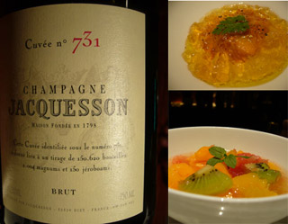 初めて飲んだ造り手。オークションで落札した格安ROSEだす。6,000円くらい。酸と果実のバランスがよくて、ロゼにありがちな青臭さやぺたっとした甘さもなくて、直球勝負で葡萄の旨みを味わうしゃんぱ~にゅ。ロゼのしゃんぱ~にゅって色味の華やかさでごまかされて、お味の評価は甘くなりがちですが、このロゼは素直においしいしゃんぱ~にゅでした。うふふ、あと2本あるのよ♪あわせたお料理もいつものことながら、ばっちり!ウシシの天国にいる気分で今日は眠れそうです♪あ~幸せ♪