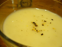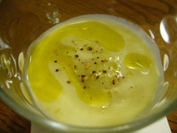 暇さえあれば、が~っと何かをすり潰しています。大人のおもちゃと友人はいいます。今回は 牛蒡の冷たいポタージュ冬瓜やジャガイモと異なって かなり手ごわいです。柔らかく炊く前のスライスの段階できちんと薄くきっておかないとダメみたい。結局、滑らかにするために粗めのざるで裏ごししました。ちょっとブイヨンが多かったので、とろみをだすために、ジャガイモも投入。牛蒡の香りを楽しむスープです。次回はもっと手際よく作りたい。最近のヒット ササミ 茗荷と青唐辛子載せ白や泡とあうとおもいます。