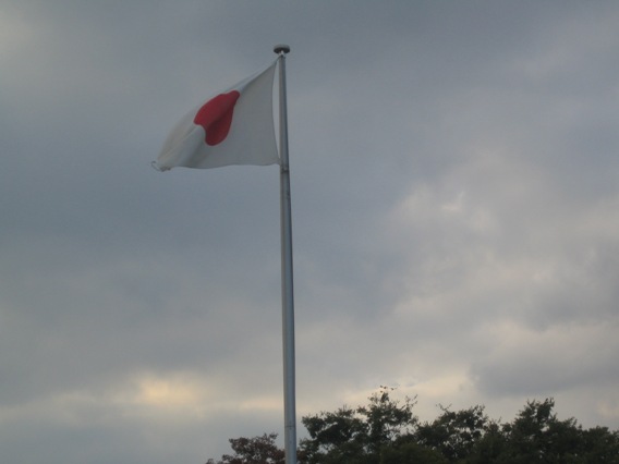 ゆったりとした一日!!小倉城の周りをウォーキングし図書館へ読書をし万葉の里公園を一周のんびりとした一日であった図書館の前の日の丸。