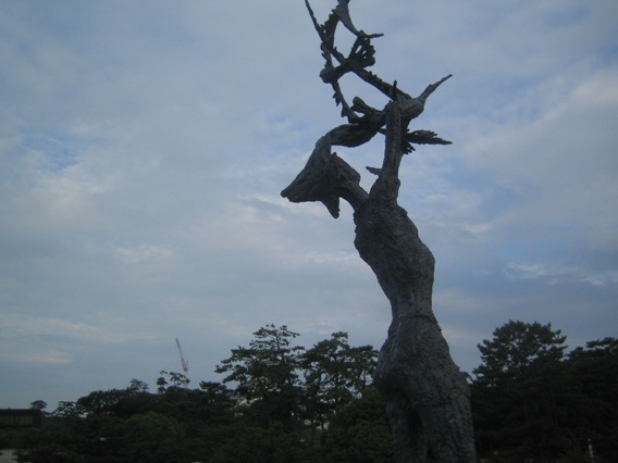 朝7時気温は25度涼しくなった!!鴎外橋の上の「鴎」という題の彫刻?!というのかな~もう少し小倉城が写っていたらいい写真と思うのだが・・・