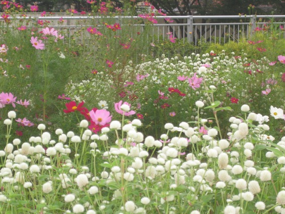 朝7時気温は27度!!風は秋を感じさせる。9月の中旬なのにまだ暑い!!公園の花は秋を感じさせる。