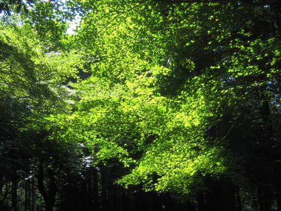 森林公園の木もれび!!約3時間のウォーキング森林浴が出来て最高!!かえでの木の緑が鮮烈だ!!