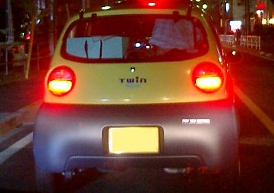 昨夜、ダイエットドラゴンの前を走っている、見た事のない自動車を発見!!あわててデジカメを取り出し、ストロボをOFFにして、数枚撮影しました。 ナンバープレートが黄色いのは、ボディーの黄色にあわせてカラーコーディネートしてある。違う違う、ナンバープレートが黄色いのは、軽自動車だからです。Twinという車名の下には、Hybridと書かれています。軽自動車のハイブリッドカーだなんて聞いた事がないな~~。というわけで、ウィキペディアで調べてみました。 =====ウィキペディア(Wikipedia)より引用開始===== スズキ・ツイン概要乗車定員は二名で、2735mmの短い全長と丸みのある外観が特徴、1800mmのショートホイールベースのため、最小回転半径はわずか3.6mとなる。また、ハイブリッド車で34km/l(10・15モード、ハイブリッドA)、ガソリン車でも26km/l(10・15モード、ガソリンA、5速MT)と低燃費である。当初、ガソリンエンジン車のほか、市販の軽自動車で初となるハイブリッド車があったが、高価で売れず後者はその後受注生産に変更し2005年2月に廃止され、一般車の方も販売不振で2005年10月で廃止された。[編集] スタイル・機構 最大出力32kW(44馬力)の3気筒DOHCエンジンのほか、ハイブリッド車はエンジンとトランスミッションの間に最大出力5kWのモーターを搭載してエンジンをアシストする。駆動方式は前輪駆動のみで4WDの設定はない。ボディタイプは2ドアの2シーターセダン(ただし厳密に言えば)で後部はガラスハッチが開くのみである。スピードメーターはセンターメーターを採用している。[編集] 歴史 * 2003年1月22日 - 発売。エアコンやパワーステアリングなどを装備しないガソリン車の最廉価モデル「ガソリンA」で税別49万円から、ハイブリッドシステムの搭載モデル「ハイブリッドA」が129万円からという価格設定。 * 2004年1月9日 - 一部改良(2型)。内外装などの変更のほか、ガソリン車のモデルを追加、ガソリンAの価格設定が税別55万円に変更される。 * 2005年2月 - 一部改良(3型)の実施とともに、ハイブリッドモデルが廃止される。 * 2005年10月 - 生産終了。===== 引用終了 ===== そうだったのか!すでに2005年2月にハイブリッドの軽自動車は、廃止されていたのか!!今、リッターあたり34kmも走る、100万円台の軽自動車を売り出せば、絶対に売れると思うのですが。スズキ自動車さん、再発売しませんか?