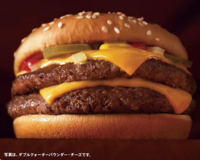 身長:168cm 体重:120.0kg 2006年9月2日の体重124.0kg 差:4.0kg減前回(2009年1月16日)の体重120.0kg 差:0.0kg減 このあいだ、友人と某ハンバーガー屋に行ったのです。友人は、クォーターパウンダー・チーズセットを注文し、その場でトレーに載せたセットを渡されました。ダイエットドラゴンは、ダブルクォーターパウンダー・チーズセットを注文し、番号札を渡されて出来上がるのを待たされたのでした。友人が、渡された商品は、ダブルクォーターパウンダー・チーズセットだったのですが、気にせず食べてしまいました。そのあと、店員さんがクォーターパウンダー・チーズセットを持ってきて、「本当は、このダブルじゃないほうが、お連れ様が注文された商品で、お客様が注文されたダブルをお連れ様に、お渡ししてしまいました。」というではないか!!状況を説明してくれているのだろうが、一言も謝罪の言葉が無い!!ダブルじゃない商品を、わざわざ持ってきたので、「あなたが間違えたので、私がダブルじゃない商品を、ダブルの料金で、食べるのですか?」と問うと、「いいえ、そうではありません。」とおっしゃる。まあ、そうだよね。ここで、店員がこの難局をどう乗り切るかを予想した。予想1.ダブルじゃない商品を私にわたして、ダブルとの差額を返却してくれる。予想2.ダブルじゃない商品を私にわたして、その後ダブルを持ってくる。この場合、「ダブルじゃない商品は、お詫びです。」と店員が言うはずです。実際に起きた事は、ダイエットドラゴンには、想像もできない事態でした。店員は、こう言ったのです。「このダブルじゃない商品の上に、もう一枚の肉を乗せてきます。そうすればダブルになります。」というわけで、ダイエットドラゴンは、この真冬の夜に、屋根も壁も無いテラス席で長時間待たされた挙句、半分冷めたクォーターパウンダー・チーズセットを改造した、ダブルクォーターパウンダー・チーズセットもどきを食べさせられたのでした。あったまにきたので、暖かいミスタードーナッツによって、温かいドーナッツを食べてしまうダイエットドラゴンだったのでした。 ホームページにあった写真です。 これが、グリーンウォークタマで評判の半分冷めたクォーターパウンダー・チーズを改造した、ダブルクォーターパウンダー・チーズの写真です。