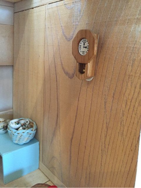 小さなお茶の道具、ハンガーやジョウロ、時計もドールハウス用です。