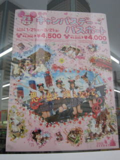 春のキャンパスデーパスポート 今なら学生限定で、お得にディズニーのパスポートが購入できます。コンビニエンスストアやディズニーストアなどで買えますよ!⇒春のキャンデーパスポートとは? 略して春キャン!一瞬ユーキャンかと思った・・・(笑)