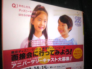 電車に、CAST募集のお知らせが・・・東京ディズニーランド・ディズニーシーでは、25周年のCASTを募集しているみたいです。電車に乗っていたら広告を発見しました!いつかは働いてみたい!東京ディズニーランド&ディズニーシーCASTの人の笑顔が好きです。 ディズニーランドはこんな風に人材を取っている!
