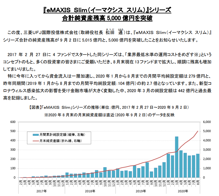 eMAXIS Slimシリーズの純資産総額が