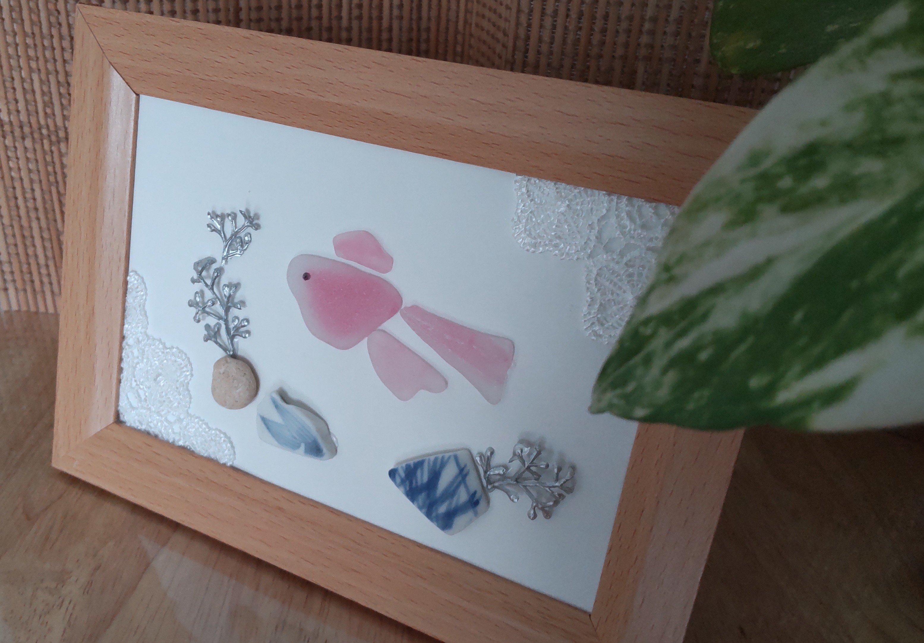 の中で、並べるだけのシーグラスアートを作りましたが、