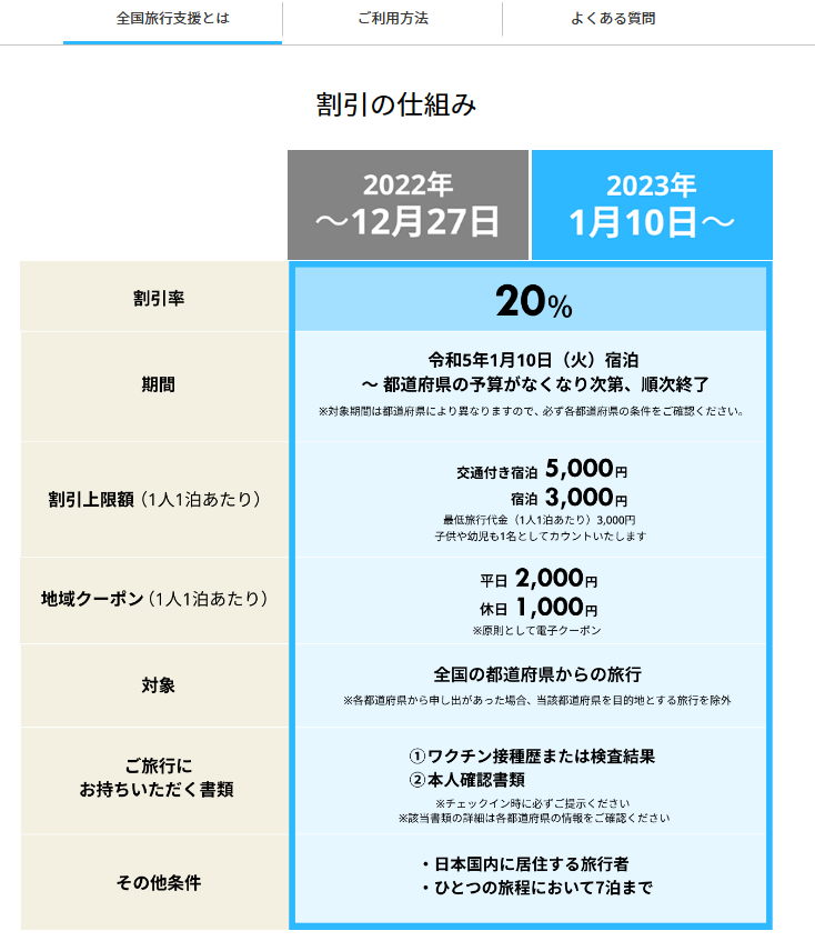 旅行支援、全国で継続実施 6、7月まで期間設定 - 記事詳細|Infoseekニュース観光庁の集計によると、47都道府県すべてが全国旅行支援を4月以降も継続する方針だ。40都府県は実施期間を6月30日宿泊(7月1日チェックアウト)分までで設定。7道県は7月も行う。国からの配分予算を使い切った地域から終了とする方針は変わっておらず、消化状況次第では途中で打ち切りとなる可能性もある。7月…【全文を読む】こんにちは気になる事、気になるニュースを読んで思ったことを気軽に書きたいと思います全国旅行支援、4月以降も継続する方針が決まったみたいですね 出典元 楽天トラベル全国旅行支援とは?割引率は上の画像に書いているように20%は助かりますよね~画像出典元 楽天トラベル全国旅行支援キャンペーン楽天トラベルを使えばさらに割引率がアップするので、旅行に行かれる方は、楽天トラベル、おすすめです~詳しくは楽天トラベル全国旅行支援キャンペーンを見てください~楽天ROOMに、欲しいものや、好きなものを載せています♪バナーをクリックすると私のROOMに飛びます♪