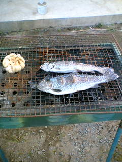最近は、釣りが楽しくて・・・。桜島を眺めながら、ゆったりと魚がかかるのをまつ・・。・・が、しかし、なあんでこうイルカがしょっちゅうやってきて折角のうちの晩飯をけちらしていってしまうのでしょう・・。先日それでも小さなのが釣れました。まだまだビギナーな僕としては、だいたい満足・・?かな?子供達も妻も喜んで食べてくれましたよ。また、釣り糸を垂らしにいってきます。