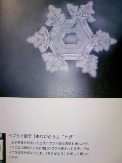 ご存知の方も多いかと思いますが、良い言葉(ありがとう・愛など)を見せた(?)水の結晶は、とってもキレイな結晶を作る。といわれ、そのキレイな結晶が沢山載った写真集的な本です。