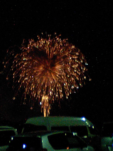 8月2日の日曜日に仕事をしていると、友人からTEL 。お寺の和尚からでした。「ちょっと付き合ってくれる?」って何事かと思ったら大分県の湯布院に荷物を運ばないといけないらしく一人では重すぎて大変なので手伝ってほしいとのことでした。時間はあったので手伝うことにした。すると荷物は竹垣でした。結構大きくて重かった。まあ何とか現地に運んで組み上げセットまで終らせましたよ。湯布院からの帰り道の高速道路から見えてきたのが花火大会。これは福岡の小郡市。写メを撮りましたのでアップしておきます。携帯のカメラなのでうまく写せなかったけど携帯なのでこんなもんでしょう。