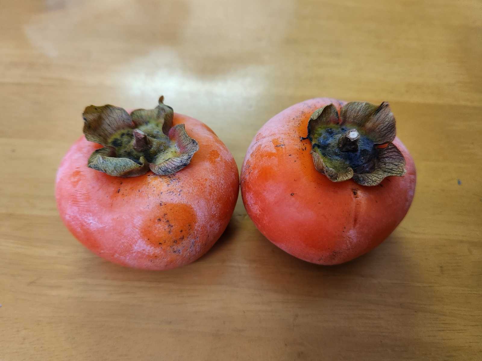 土曜日です。うちに生った柿2個。先々週シブ抜きをしてたのでした。忘れてました(笑)…