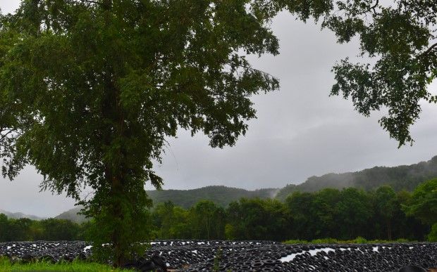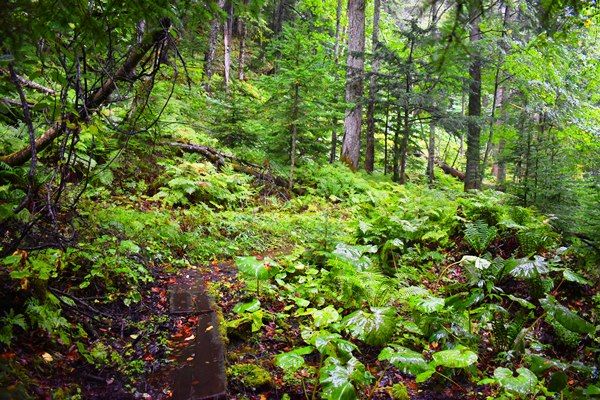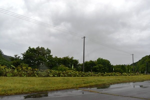 6〜7月の収穫時期には2m以上にも成長するラワンブキ、あら、季節終わったやん。