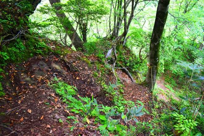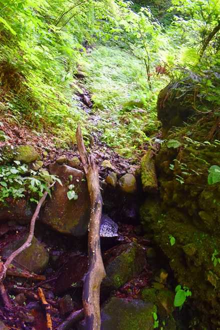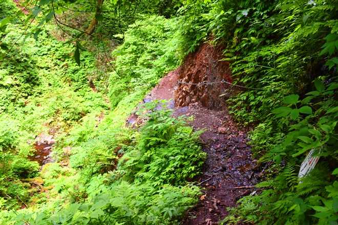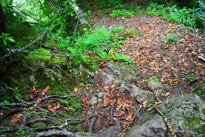 鎖を使ってのプチ沢登りもある。
