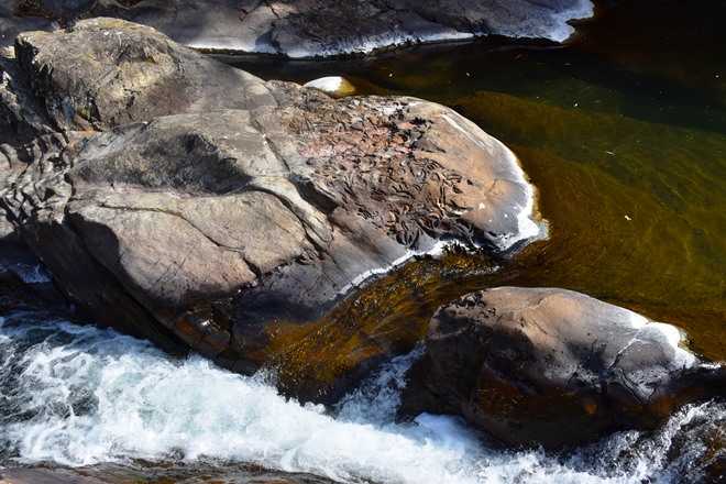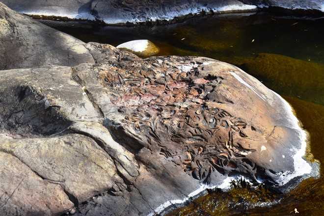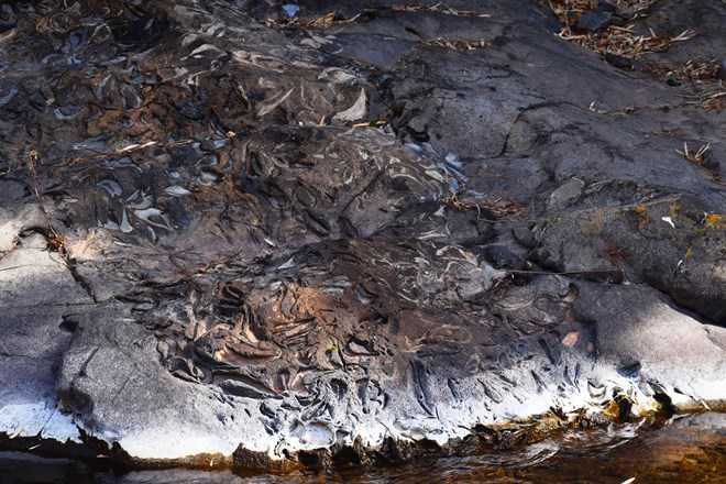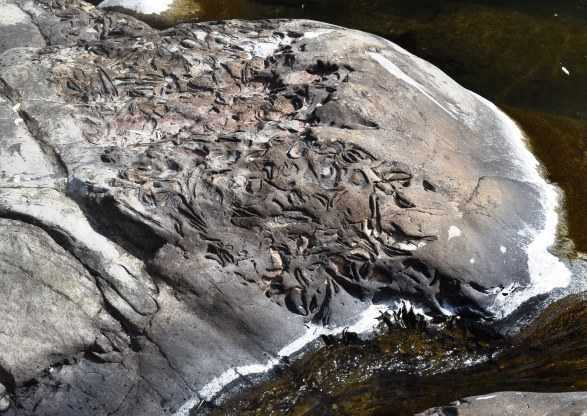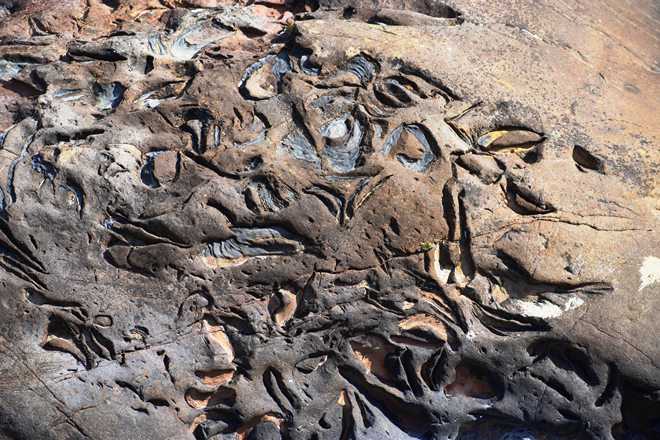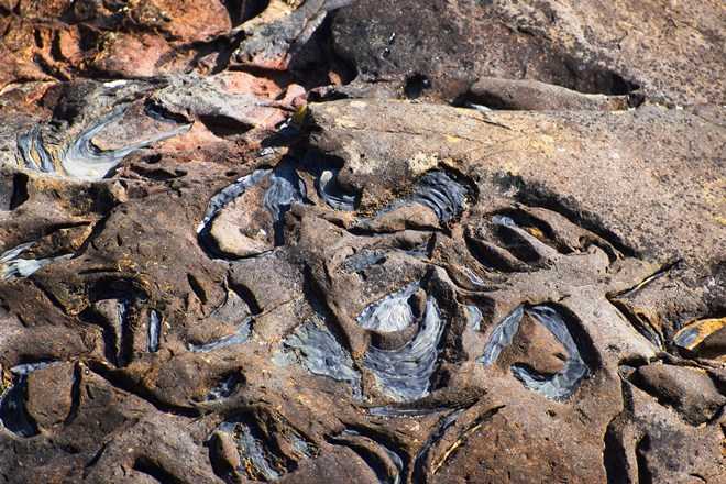 こういうのは、確か見たことないな。甌穴みたいなものだろうか。いや川の流れでできたものではないようだ。