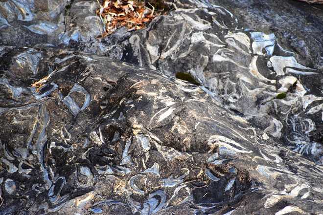 カキ化石層らしい。牡蠣?