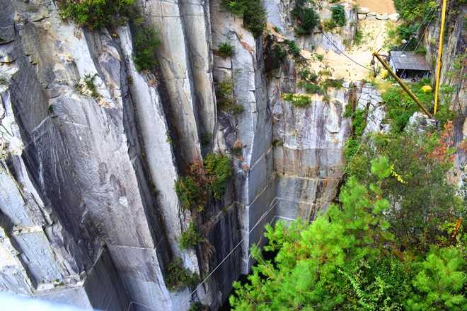 石に鉄製のクサビを打ち込み、割りとることを「切る」というんよ。昔は石を切るのに、3日かかったんやけど、ジェットバーナーで焼き切った石をワイヤーで釣り上げる形での採石するようになったんや。
