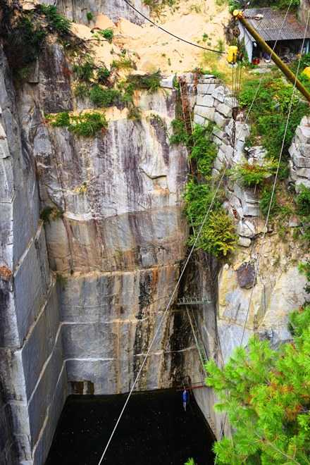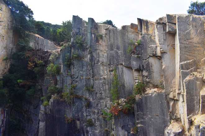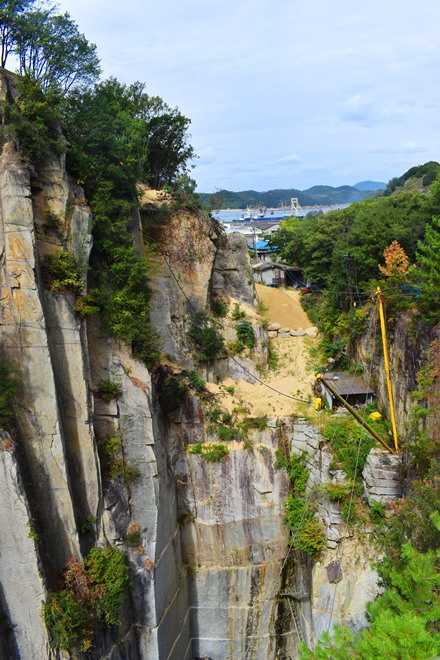 採石場は最盛期には127カ所あったんやけど、白手の北木石を採石している鶴田石材だけ、他には「瀬戸赤」と呼ばれる赤手の石を採石しているところがもう1社となったんよ。安い輸入石が入るようになったのでね。