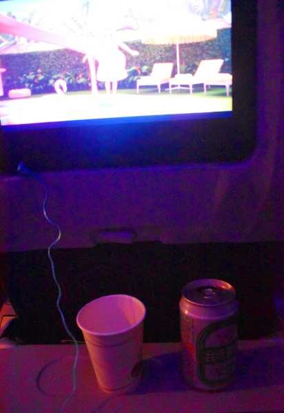 映画は5本観て、お尻は横に割れた。何回、ギャレーにビール頼みに行っているんや。何回も着たら、あいつヤバイと思われるので、1か所ではなく。