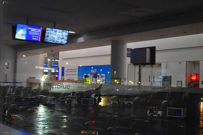 ターミナル1に到着し、ジェットブルーのターミナル5に移動する。