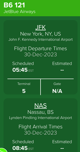バハマは時差無。フライト3時間。118か国目(+9植民地)となる。