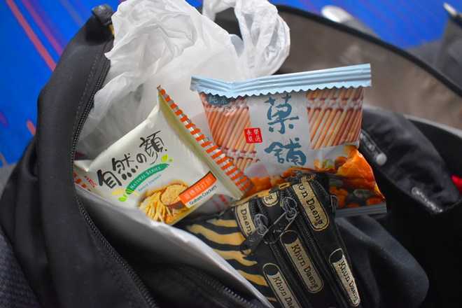 日本では300円程のサンドイッチが15ドルとかだったんで、エヴァで貰ったスナック食っておく。