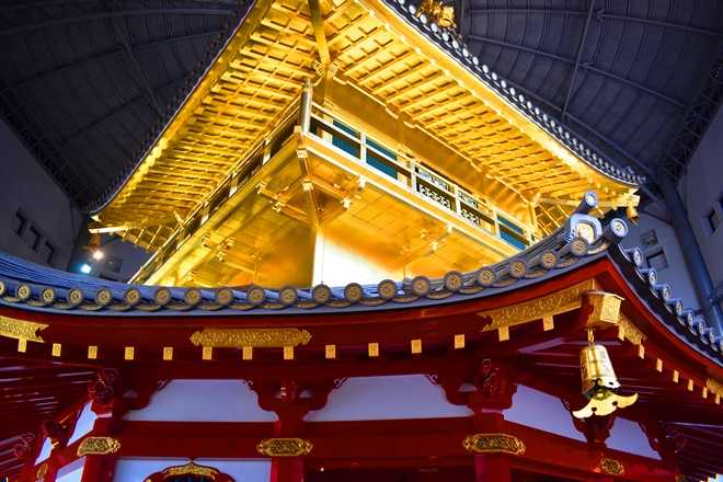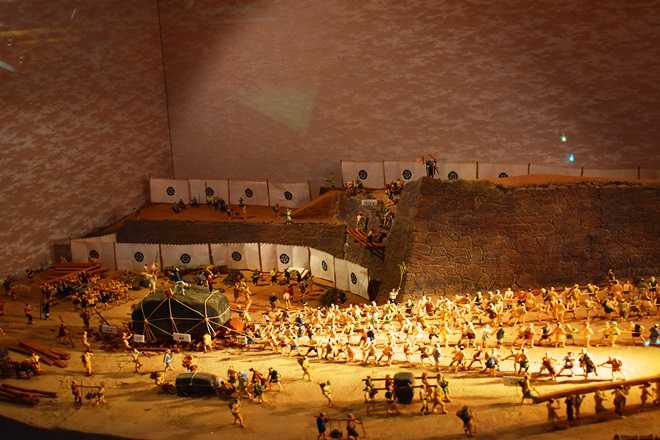 6階建てのうち、5階部分を原寸大にて忠実に再現。作者は東大、東京芸大、京都市立芸大。発掘された当時の瓦をもとに焼き上げた庇屋根。