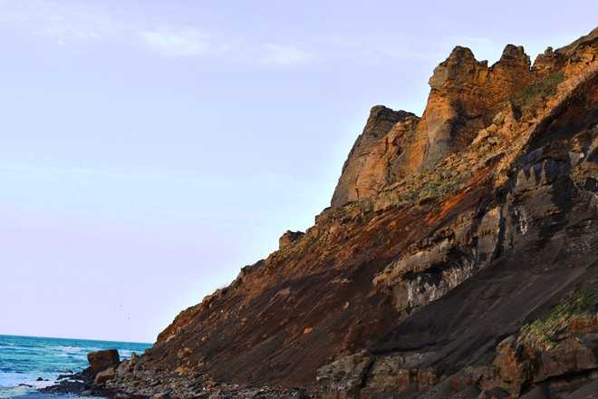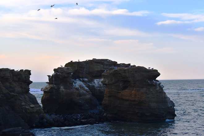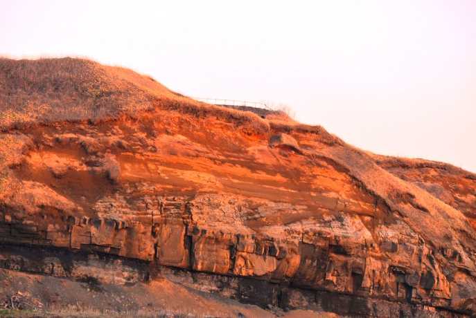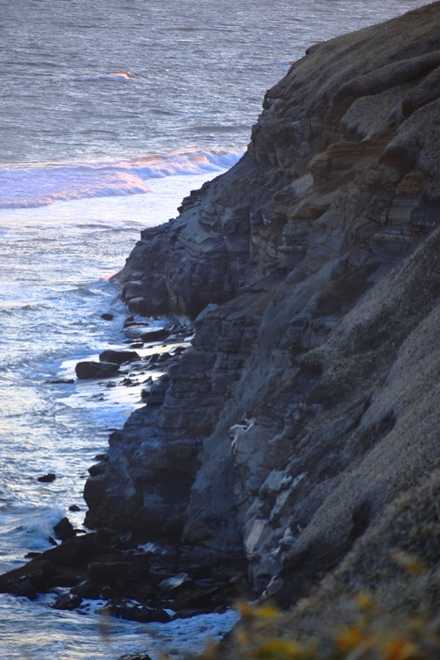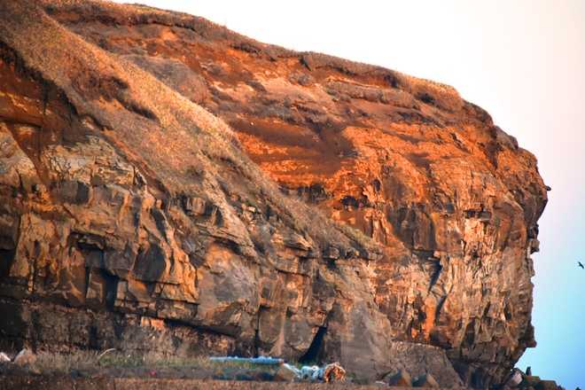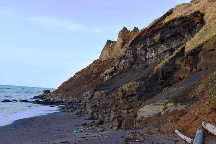 オオセグロカモメのルッカリー。糞で白くなっている。