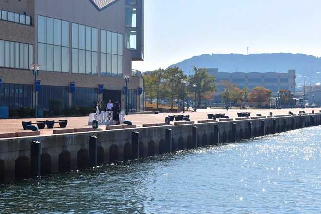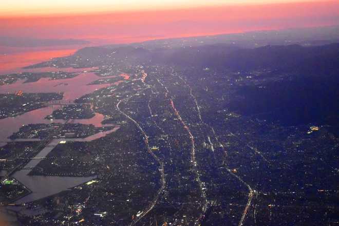 神戸方面。六甲アイランドの橋とかポーアイとか見える。