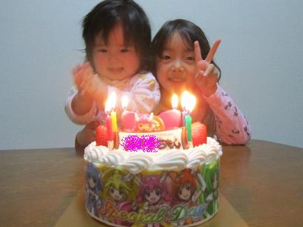 小さな事でバタバタし、とてつもなく忙しいかーちゃんです、こんにちは。 慣れない生活というのは何もしなくても疲れます。かーちゃんが疲れているのと同じように、たぁもお疲れモード。やっと治ってきた風邪をまたぶり返させてしまいますた昨日の夕方から機嫌の悪い事今朝はろくに飯も食わんかった。体温は37.3度。保育所から迎えの電話が鳴らないことを祈りつつ会社に来ております さて。18日はみぃの6歳の誕生日。いつもなら車で待ってるって言う子が、珍しくケーキの予約に付いて来た。 して・・・。 プリキュアのケーキを買わされたさ味はたぁの誕生日に食べた、普通のイチゴのケーキの方が美味しかったような・・・お姉ちゃんのお誕生日に妹もハイテンション(注:顔の大きさについてはコメントしないでね!)