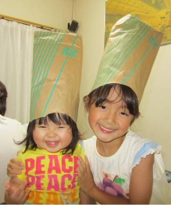 今週はお片付けの週末。っちゅーことで、不用品の一斉処分&普段には手をつけない場所の掃除をしました。 熱帯魚の水槽も一新させ、お魚さんも気持ちよさそう で、60cmの水槽にエビが8匹と魚が4匹で可愛そうだったので、仲間を買ってきてあげました。たぁが「わ~い~(かわいい)!わ~い~(かわいい)!」とデカイ声で指差していた魚10匹と、かーちゃんが気に入った魚5匹。 で。帰って来て水槽に入れてあげる作業はヨンジェの仕事。助手かーちゃん。水槽の周りで楽しみに待つ子供・・・。いや。。。お魚さんが入っていた紙袋を被って、大はしゃぎ何とも平和な娘たち。 カメラを向けるといつも無表情だったたぁが、ここまで笑顔を撮らせてくれてかーちゃん嬉しいばかりです。(そーゆー問題?) でも、何が楽しいのかはさっぱりわからん。 あ。ちなみにTシャツの文字は最初から真ん中が大きい文字になってます。決して引っ張られてるせいでは有りません