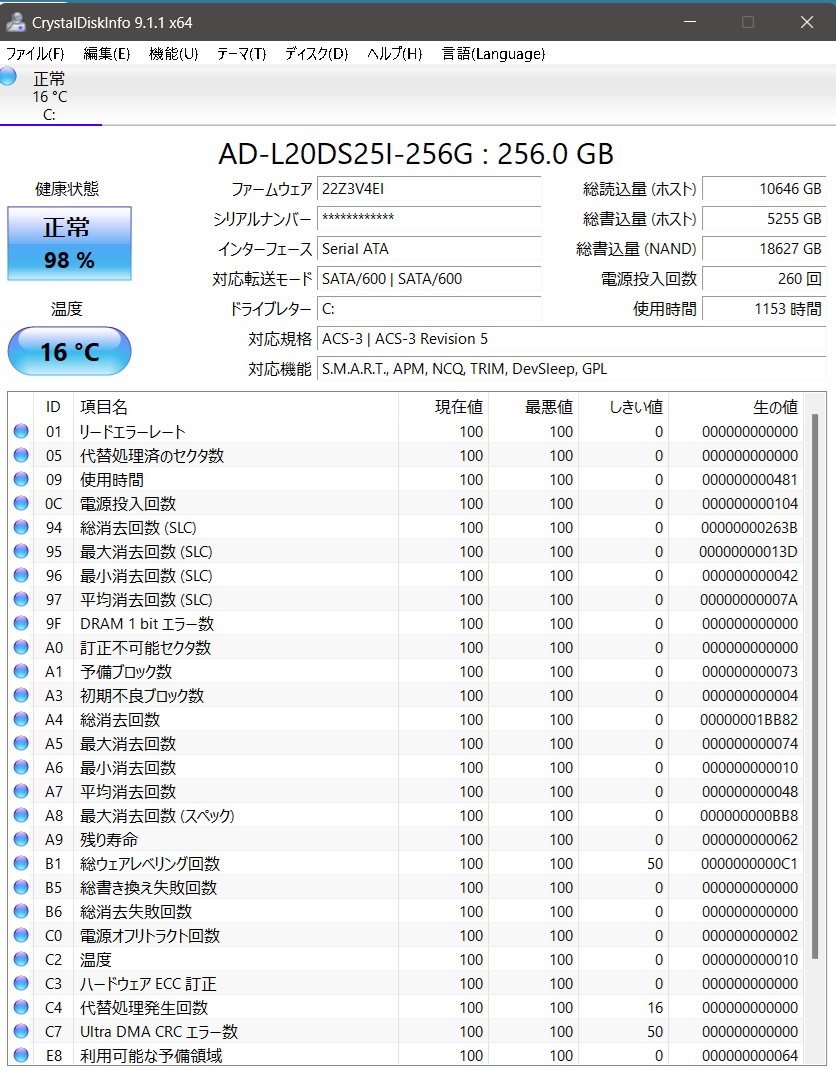 このブログにはアフィリエイトリンクが含まれます。こんな感じで健康判定なのに%は減っていくので...以前買っていたケースを使ってバックアップ。コピーソフト付きを買ったんですがインストールしたPCの紐付けや解除が面倒そうなのでEaseUS Todo Backup のフリー版を使うことに...左右に動かないようにゴム?のスペーサーがあるのでドライブを嵌めにくいです。熱がこもりそうでHDDで長時間使用するのは不安。分かりにくいですが左下は7ミリドライブ用スペーサー。ノートのSSD交換時に外したHDDを載せてみたけど、よく見ると2009年製...ケース越しだとCrystalDiskInfoでデータが見えないので不安。3台のPCで1台だけ繋いだ時「チェックしてください」とメッセージが出たり接続がきれますが、PC側のUSBの問題みたいです。Logitec(ロジテック) 2.5インチHDD/SSDケース/ソフト付 LGB-PBSU3S ブラック