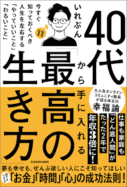 イレブン先生の40代から手に入れる「最高の生き方」を紹介します。この本を読んだきっかけは、YouTubeの本要約チャンネルで紹介していたからです。また、私自身も40代後半であり肉体的にも精神的にも衰えを感じているところでした。読書をきっかけに前向きになれればと思いました。感銘を受けたところを紹介します。①3つの余裕を手に入れることが重要である(1 時間 2 お金 3 心)②体調を自分で上手に整える(運動・栄養・休養)③一流に触れることで視野は広がり、視座が高まるのでどんどん自己投資すべきである④人は属するコミュニティによってどんどん変化していく。優秀な人がいるコミュニティを選ぶべき⑤「休みに仕事をすれば良い」は自分に対する逃げの思考である。以上の他にも共感するべき部分が多くありました。期待通りに、読後に前向きな気持ちになれました。40代だけでなく、年代に関係なく通じると思います。