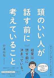 安達先生の「頭のいい人が話す前に考えていること」です。自分の周りの仕事が速く効率的に行うことのできる方は、「話が短くて、わかりやすい。」です。逆に「話が長く、何を言っているか分からない。」方もいます。当然、後者の方は仕事効率が悪いです。仕事を効率的にこなすことのできる方の話し方には技術があると思い。この本を購入しました。重要だなと感じた部分を紹介します。 ①一方的に自分のことを話すのではなく、相手の求めていることに対しての話をすることができる。②まずは、相手の言っていることをすべて聞いてから求めていることを話す。③絶対に感情的にならない。④相手の話を言語化して要約できるようにする。⑤相手のレベルに合わせて説明できるようにする。⑥結論から話す⑦事実と意見を分けて話すことが重要である⑧褒められようとしてペラペラしゃべらない。以上の他にも共感する部分がたくさんありました。私自身も部下に指導する立場でもあるので、わかりやすい話し方をしていきたいです。