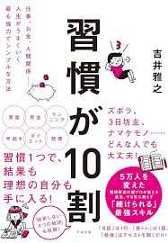 吉井 雅之先生の習慣が10割を紹介します。9月に吉井先生の講演会が近くで開催されることを聞いたので、参加の前に吉井先生の本を読み予習してから臨んだ方が実りあるものになるだろうと考え読書しました。勉強になった点を紹介します。①人に能力の差はなし、あるのは習慣の差だけであり、今の自分をつくっているのは過去の習慣である②自分のプラスの出力に対して、プラスの出力で応じてくれる人と付き合うべきである。③人間の脳は「できる」と思ったことは全部できるようになっている。④部下に指導する際には「正しさ」よりも「楽しさ」を教えることが正解である。⑤意識的に物事の良い面に目を向ける習慣をつける。以上の他にも参考になった部分は多かったです。少しずつ今よりも成長しようと前向きな気持ちになりました。