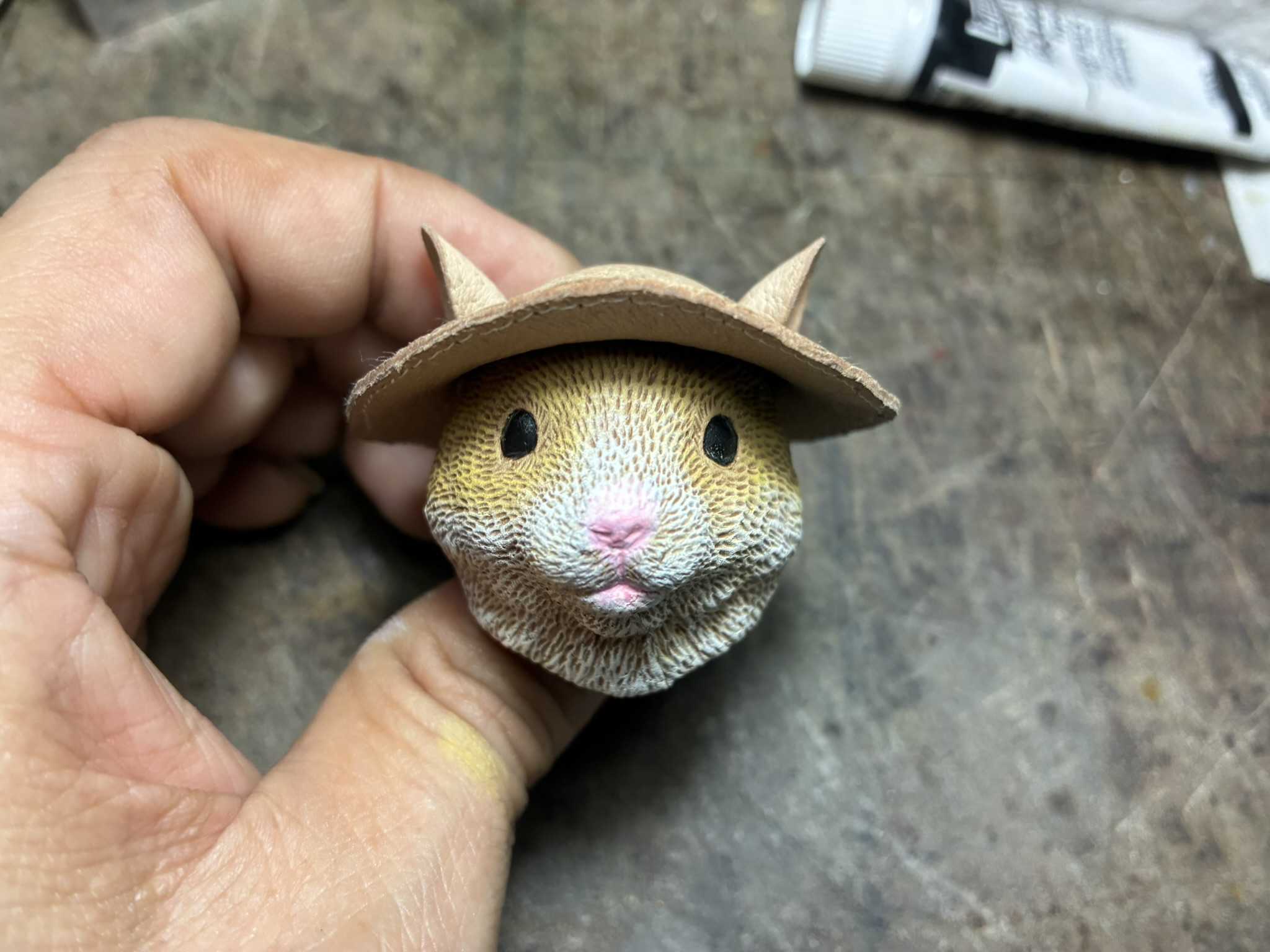 ハムスターの頭に帽子をかぶせました。ハムスターを組み立ててみました。
