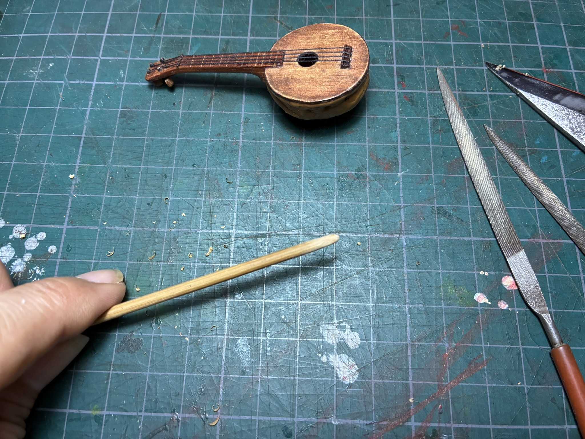 ベルトをウクレレに付けるピンを、竹ひごで作ります。削りだしました。
