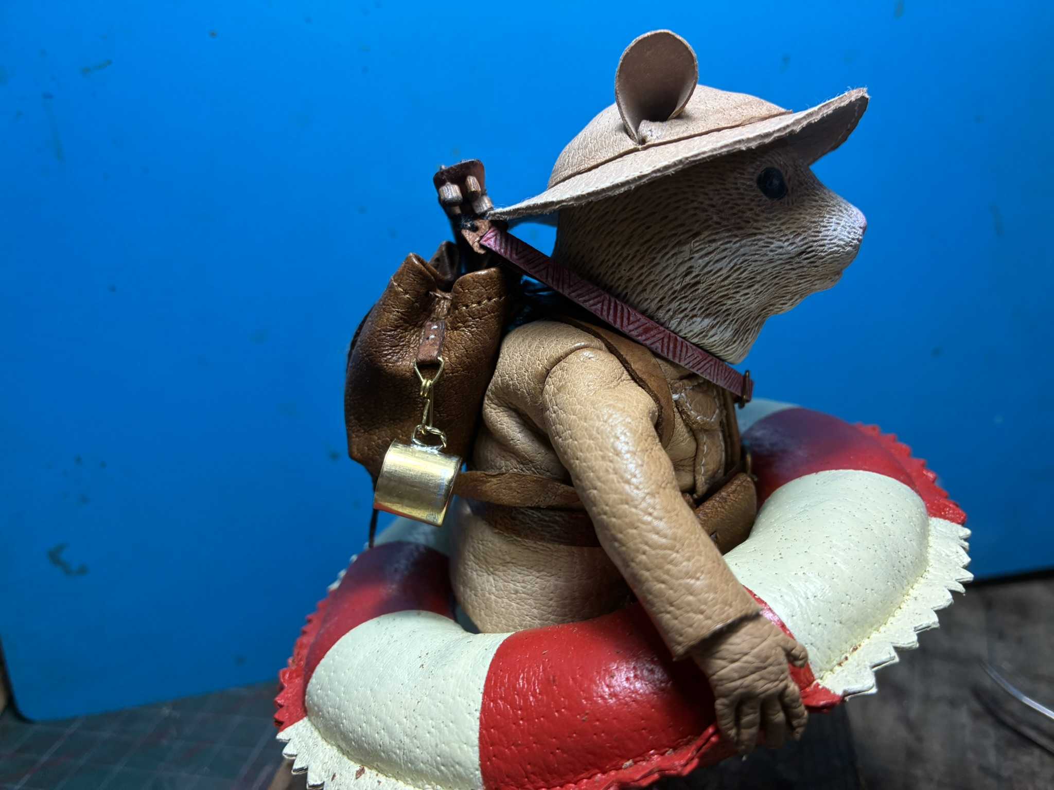 浮輪のマスキングテープを外して、ハムスターに持たせてみました。