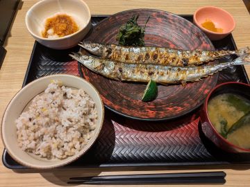 今日のお昼は、大戸屋へ行きました。生さんまの炭火焼き定食を食べました。今年のさんまは、例年より早いですね。しかも、大きく身が太って丸々しています。脂乗りも良くて、美味しかったです。2匹も食べれて、大満足です。また、食べに来たいです。大戸屋 生さんまの炭火焼き定食(2尾) 1480円