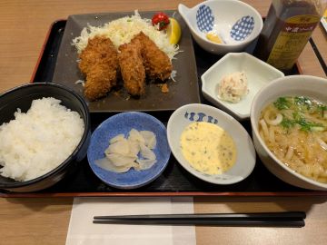 今日のお昼は、夢庵へ行きました。大粒牡蠣フライ御膳を食べました。みそ汁を温かいうどんに変更しました。寒くなってきて、カキフライが食べれるようになってきました。なので、大粒牡蠣フライを食べました。牡蠣が大きくて食べごたえがあっていいです。タルタルソースも絡めて美味しかったです。温かいうどんが、出汁が効いて麺がツルツルで美味しかったです。夢庵 大粒牡蠣フライ御膳+温うどん 1726円