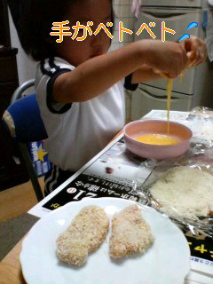 下準備はママがやったけど コロモ付けは実咲ちゃんが全部やりました!