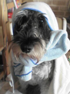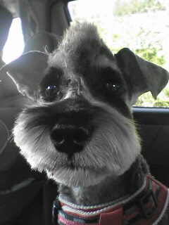 床屋さんの帰りだよ。今回は初めて行ったクリニックでのカットです。今回は、ナント前髪があるんです。物珍しくて、ついつい撫でなでしてしまいます。