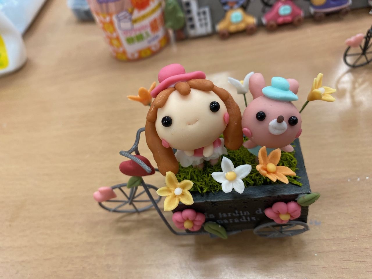 再びではありますが… やはり中止のお知らせです 4月1日(水)の JEUGIAカルチャーなんばパークス 4月2日(木)の 近鉄文化サロン奈良店 こちらのミニチュア粘土細工講習会は 再び中止決定致しました コロナウイルス感染拡大防止の為 自粛させていただきます。 奈良店では 5月にお会い出来ますように なんばパークスでは 6月にお会い来ますように と、強く願って 自宅こねこねしております 新作:「軽トラガーデンイエロー」初級